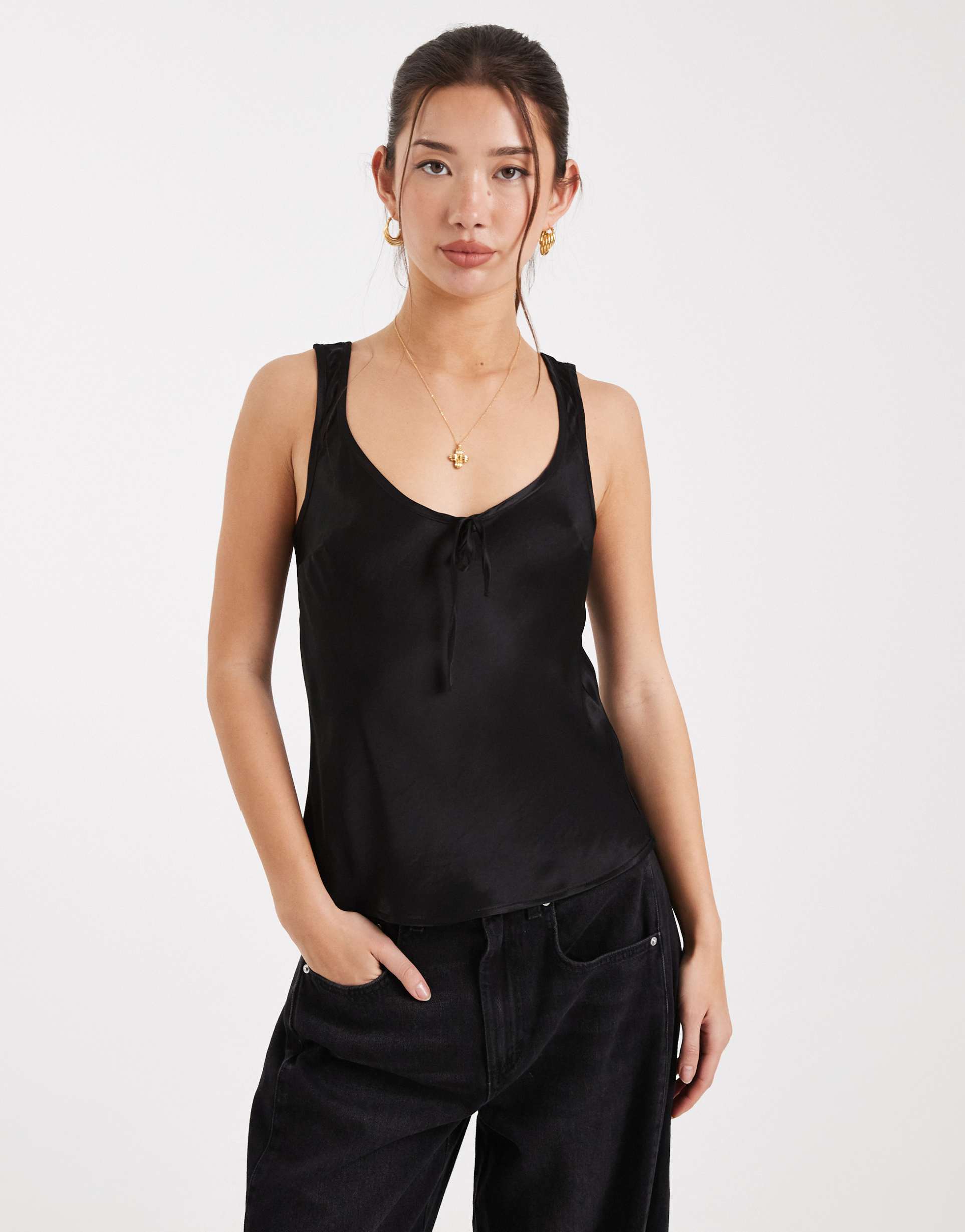 ASOS DESIGN SATIN LOW SCOOP NECK CAMI TOP IN BLACK