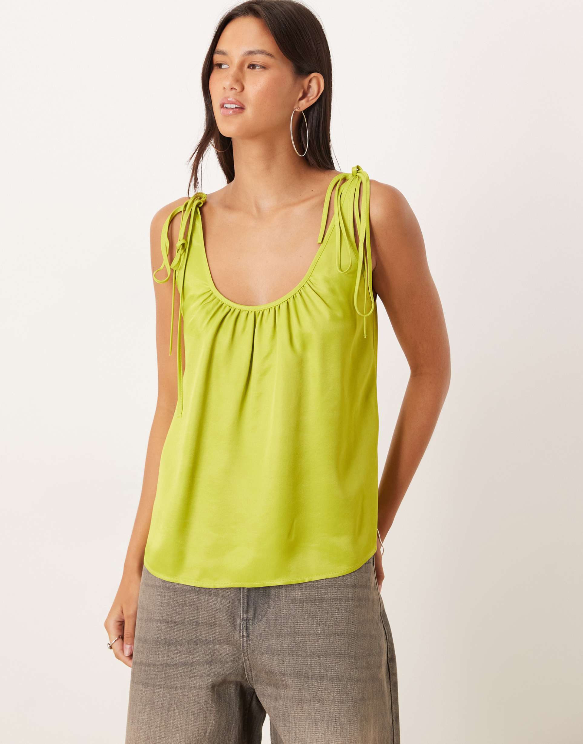 ASOS DESIGN SATIN TIE SHOULDER CAMI TOP IN GREEN