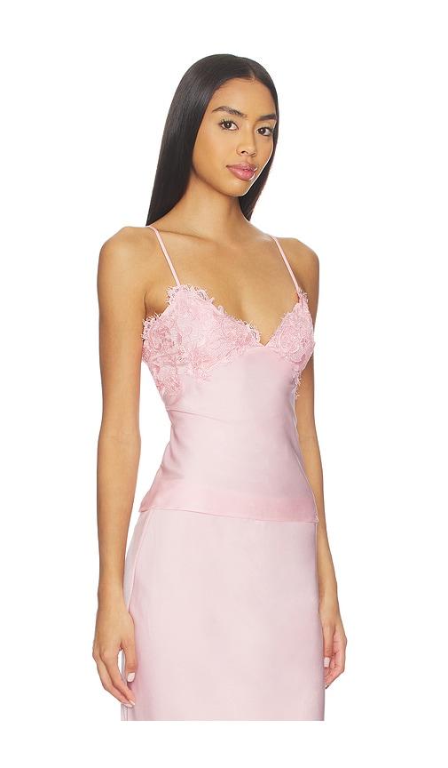BARDOT ELISAN LACE SATIN CAMISOLE IN PINK.