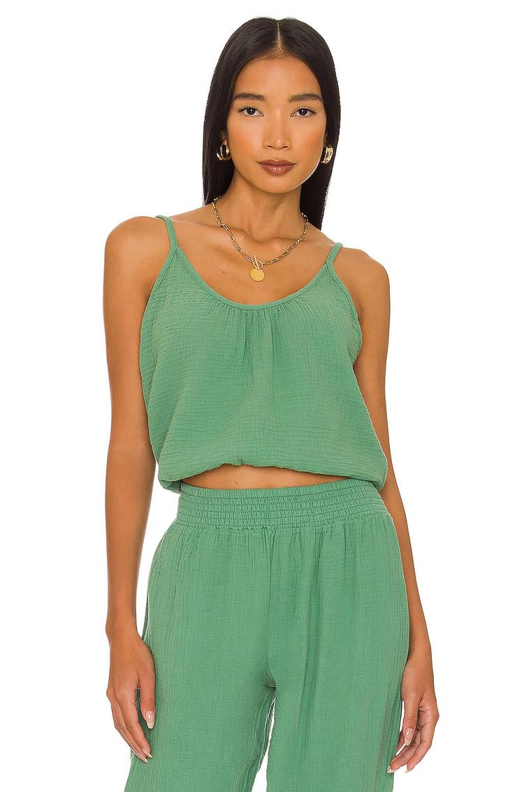 Lightweight cotton gauze in a muted green hue defines this cropped camisole, perfect for warm days and beach getaways. Featuring a loose fit with spaghetti straps and a classic round neckline, it offers effortless comfort and style. The cinched hem adds subtle shape while maintaining a relaxed vibe. Ideal for casual outings, vacation wardrobes, or everyday wear, this versatile cami blends bohemian charm with casual chic ease.