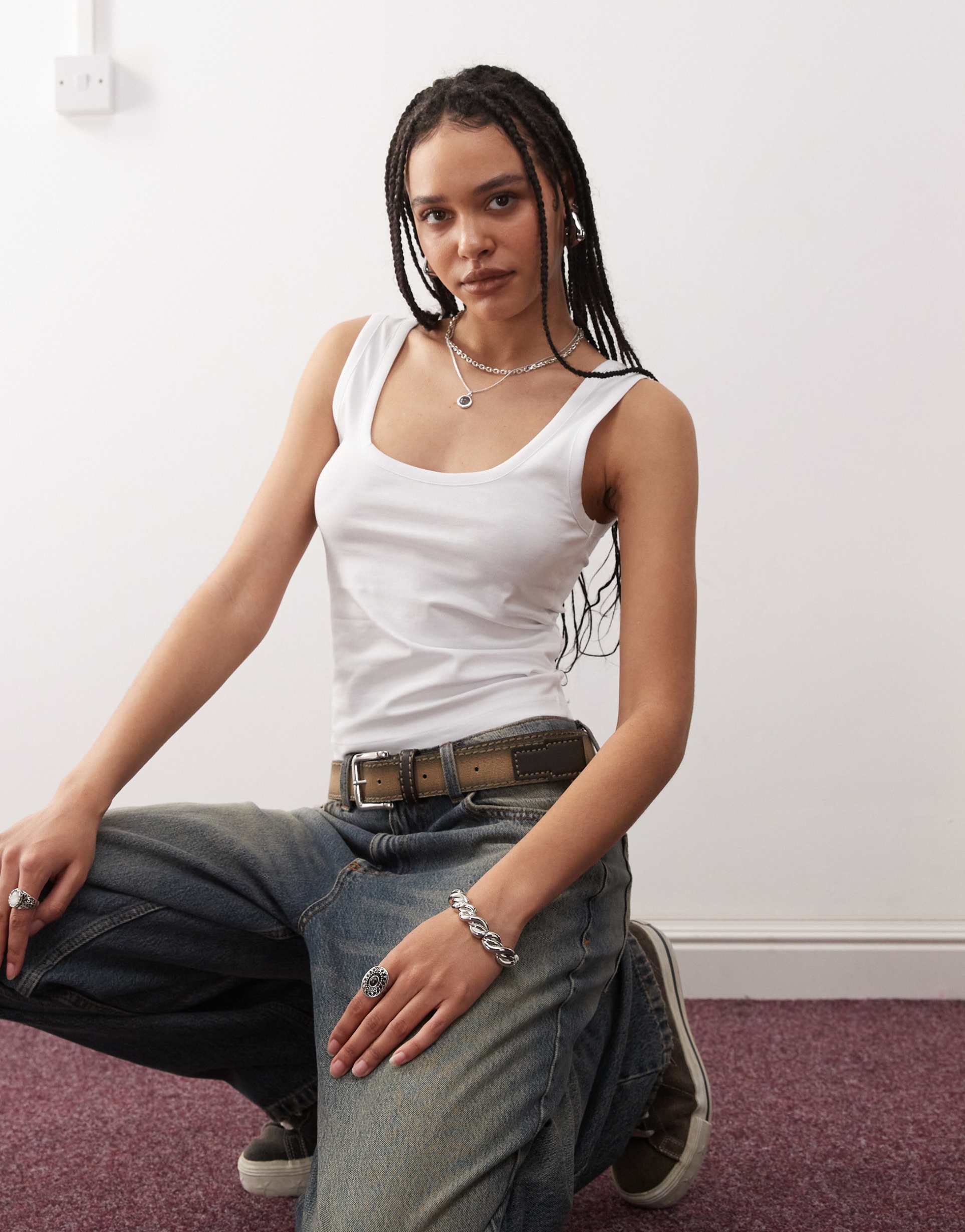 COLLUSION STRAPPY SQUARE NECK CAMI TOP IN WHITE