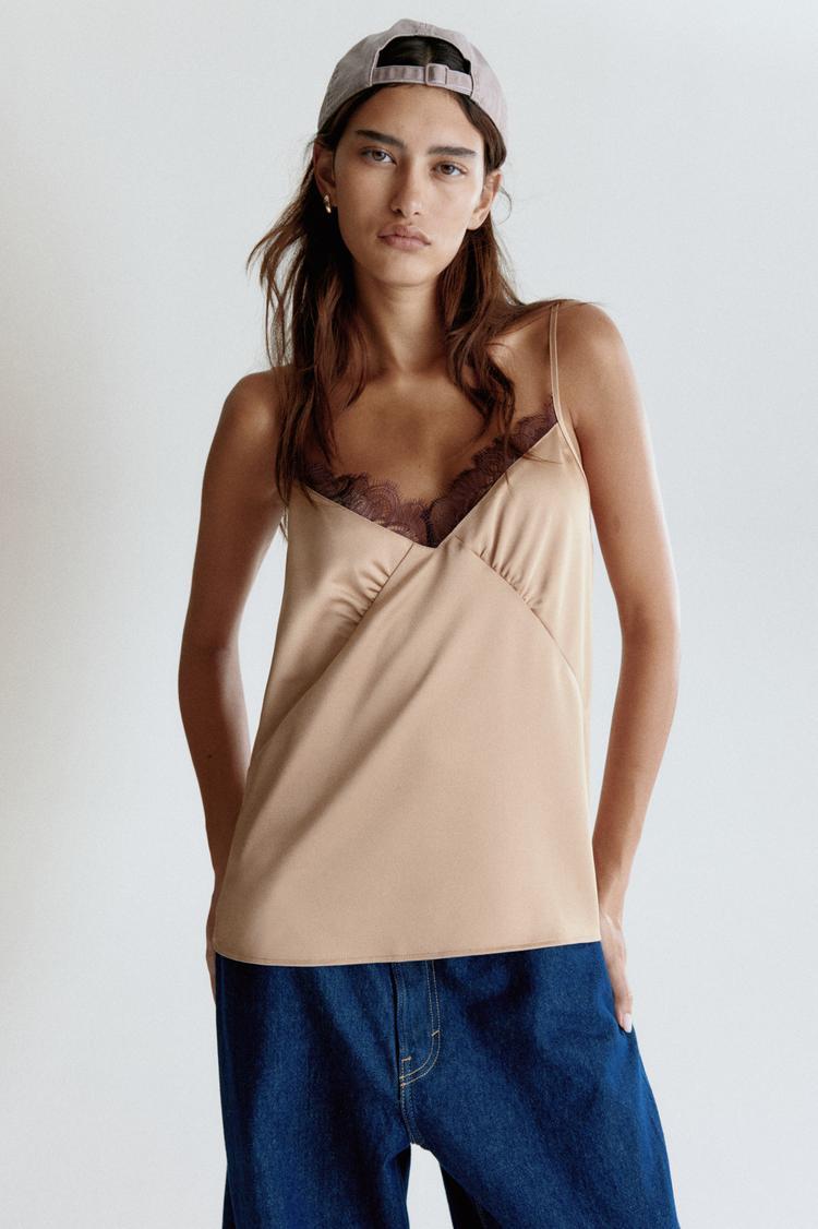 LACE-TRIMMED SATIN CAMISOLE TOP