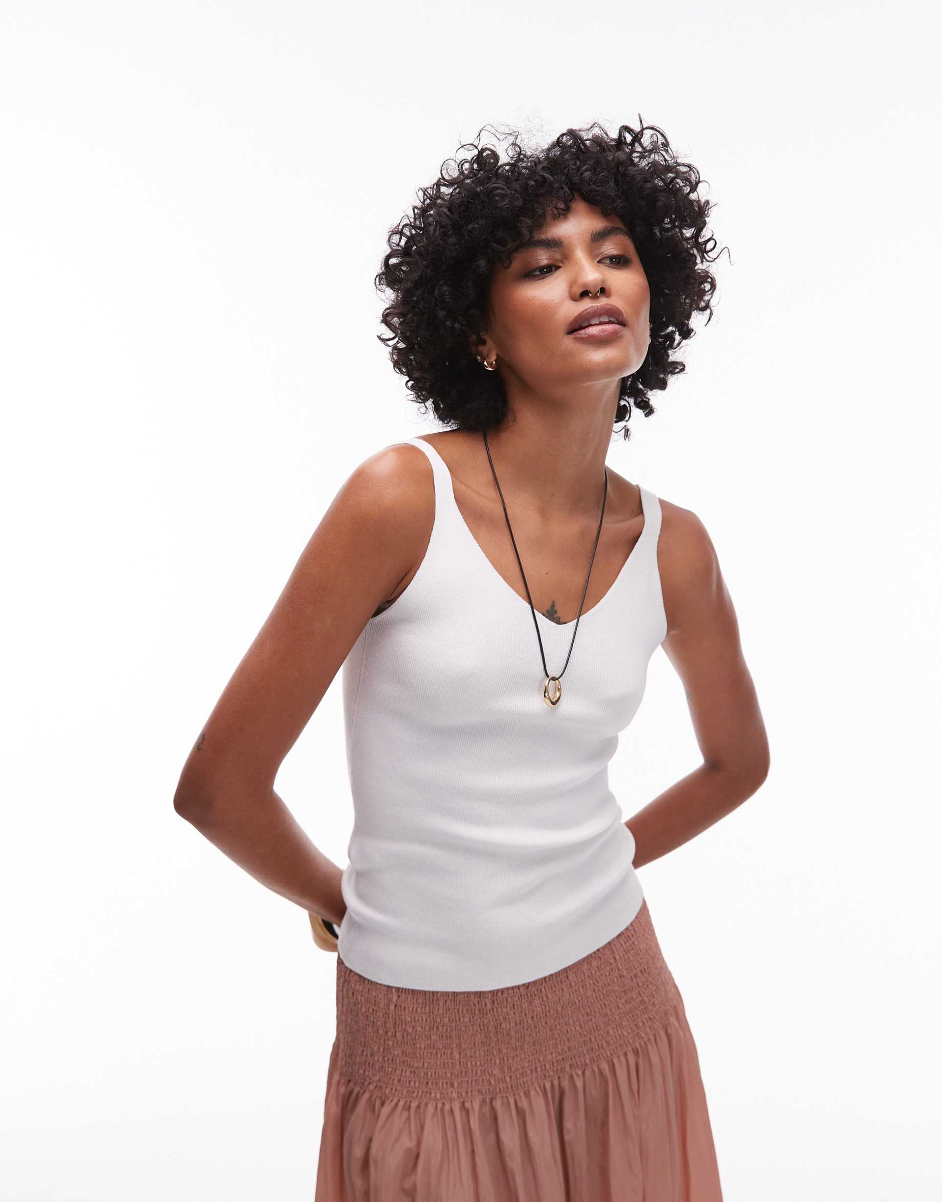 MANGO KNIT V NECK CAMI TOP IN IVORY