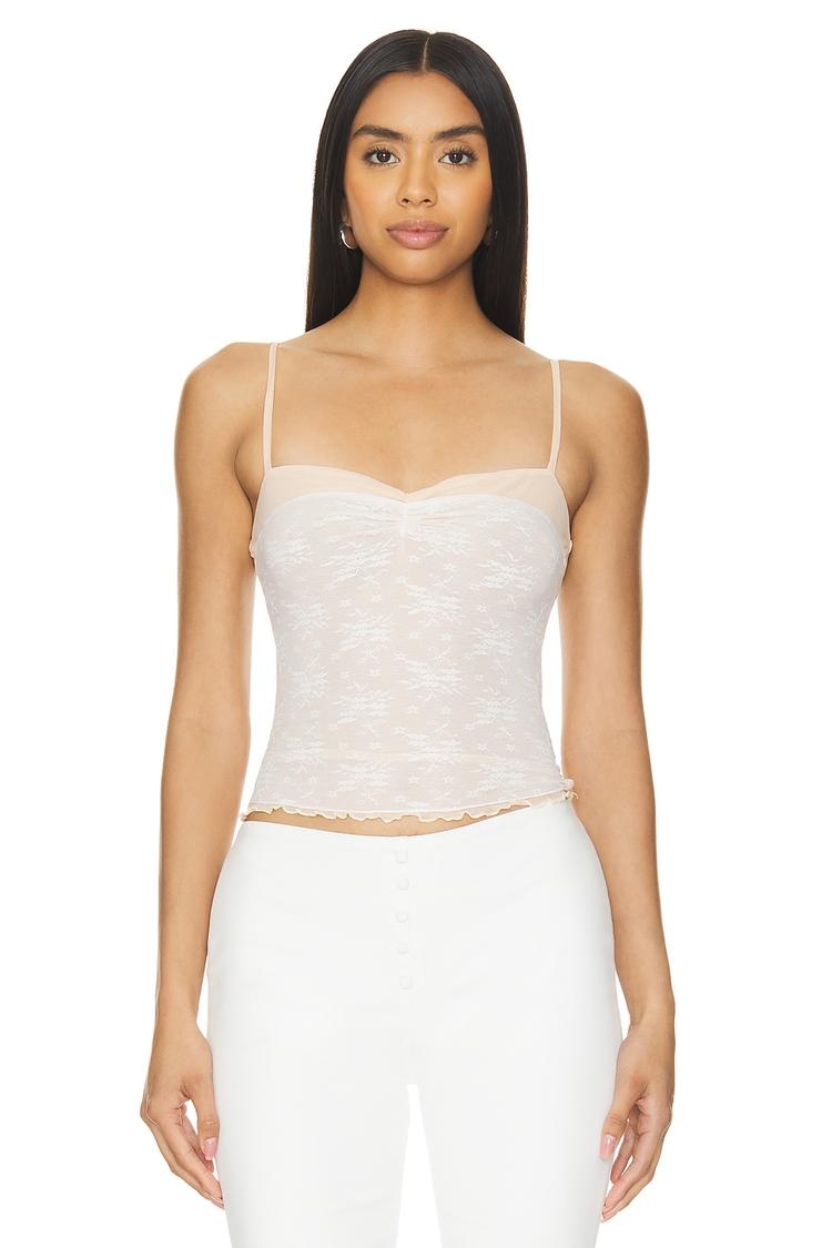 Delicate lace trim and a fitted silhouette define this Cream camisole with a flattering sweetheart neck and slender spaghetti straps. Crafted from a nylon-elastane blend, it offers a lightweight, slightly stretchy feel perfect for spring and summer. The waist length and covered back enhance its chic, modern appeal, making it ideal for casual outings, brunch dates, or a night out. Slip into this alluring top to add a touch of elegance and subtle sexiness to your warm-weather wardrobe.