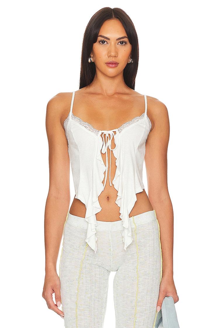 Soft drape and delicate lace trim define this fitted white camisole, crafted from a rayon-spandex blend for comfortable stretch. The cropped length and spaghetti straps enhance its romantic silhouette, while the front features a ruffled drawstring closure that adds a chic, flirty touch. Perfect for spring and summer outings, this cami top transitions effortlessly from casual brunches to date nights and lively evenings out. Adjustable straps ensure a personalized fit, making it a versatile staple for a trendy, feminine wardrobe.