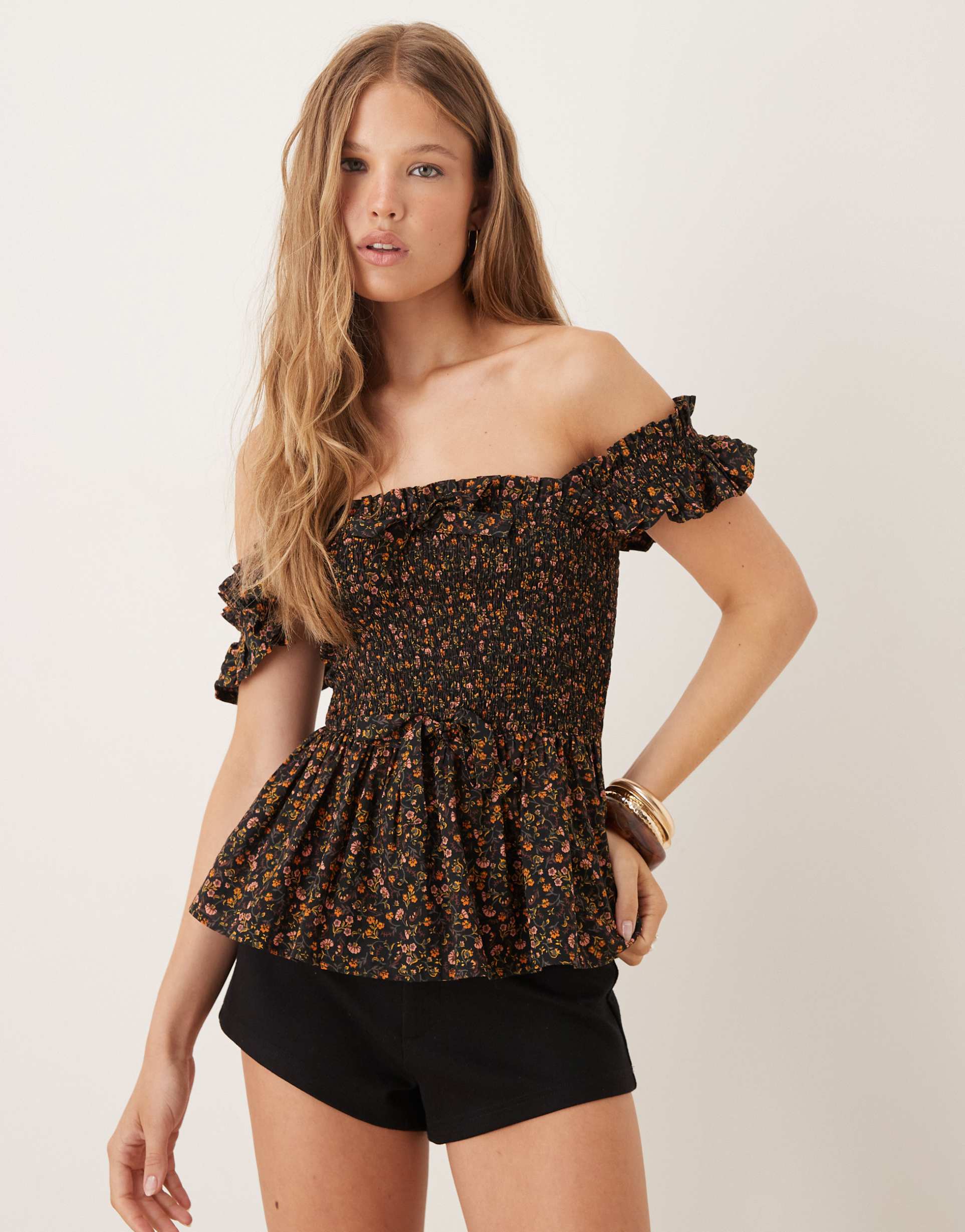 NOBODY'S CHILD CHRISTINA CAP SLEEVE SHIRRED CAMI TOP IN DARK FLORAL