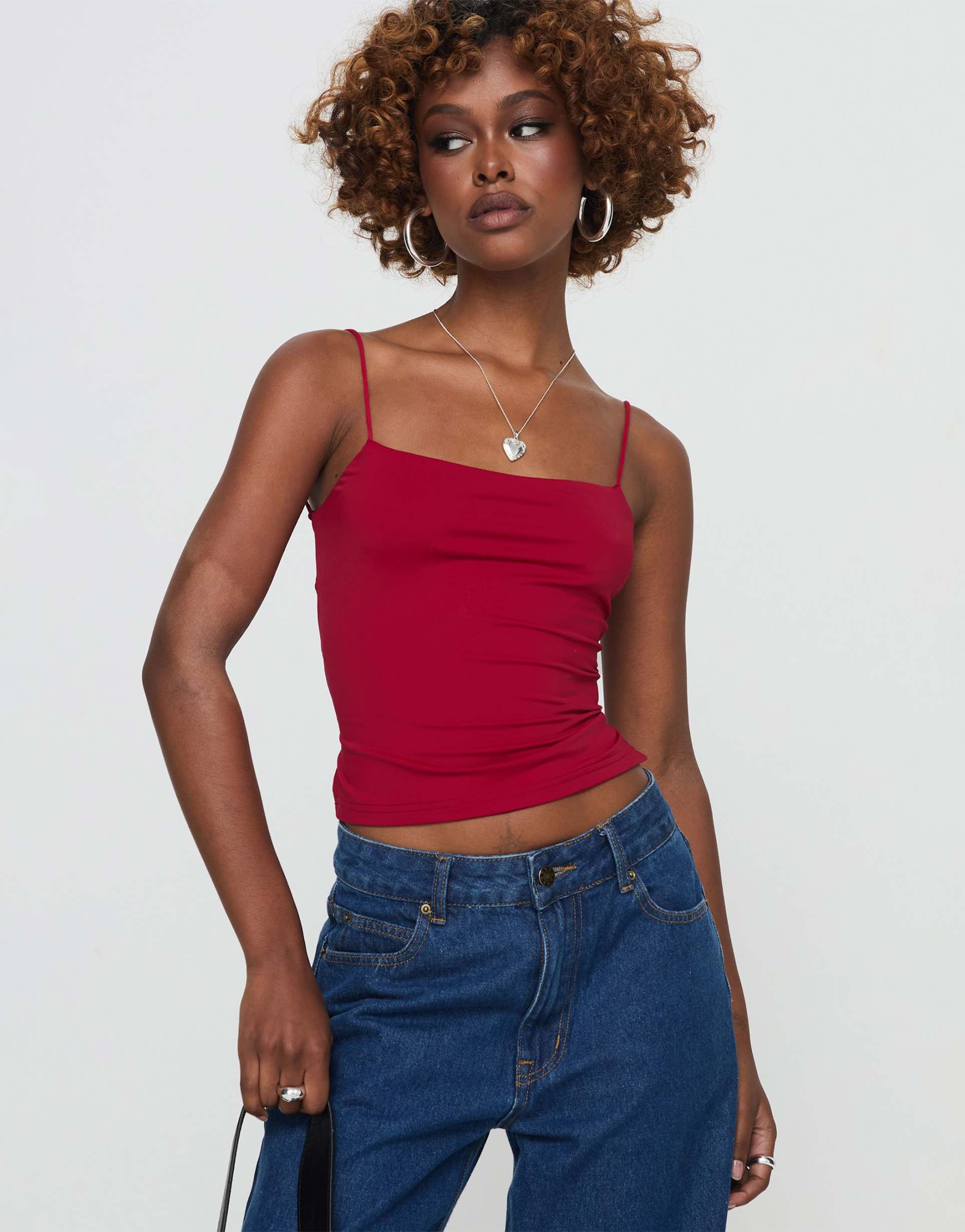 PRINCESS POLLY ELISSA SQUARE NECK OPEN TIE BACK DETAIL CAMI TOP IN RED
