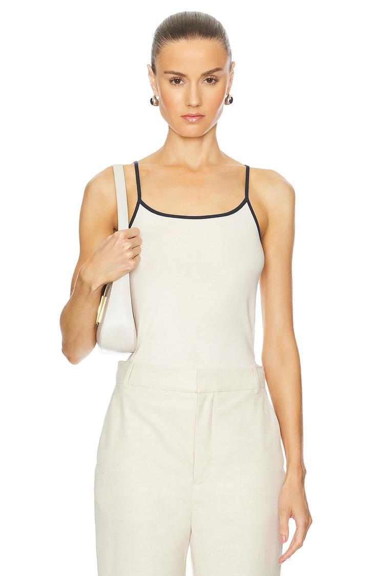 Soft, lightweight cotton jersey shapes this slim-fitting cami featuring a clean square neckline and slender spaghetti straps. The off-white base is elegantly accented with black tipping along the neckline and straps, delivering a minimalist chic vibe perfect for warm weather. Its hip-length cut ensures versatility, making it an ideal choice for casual outings, everyday wear, or relaxed brunches. Easy to pull on and machine washable, this cami blends comfort with understated style for effortless seasonal layering or standalone wear.
