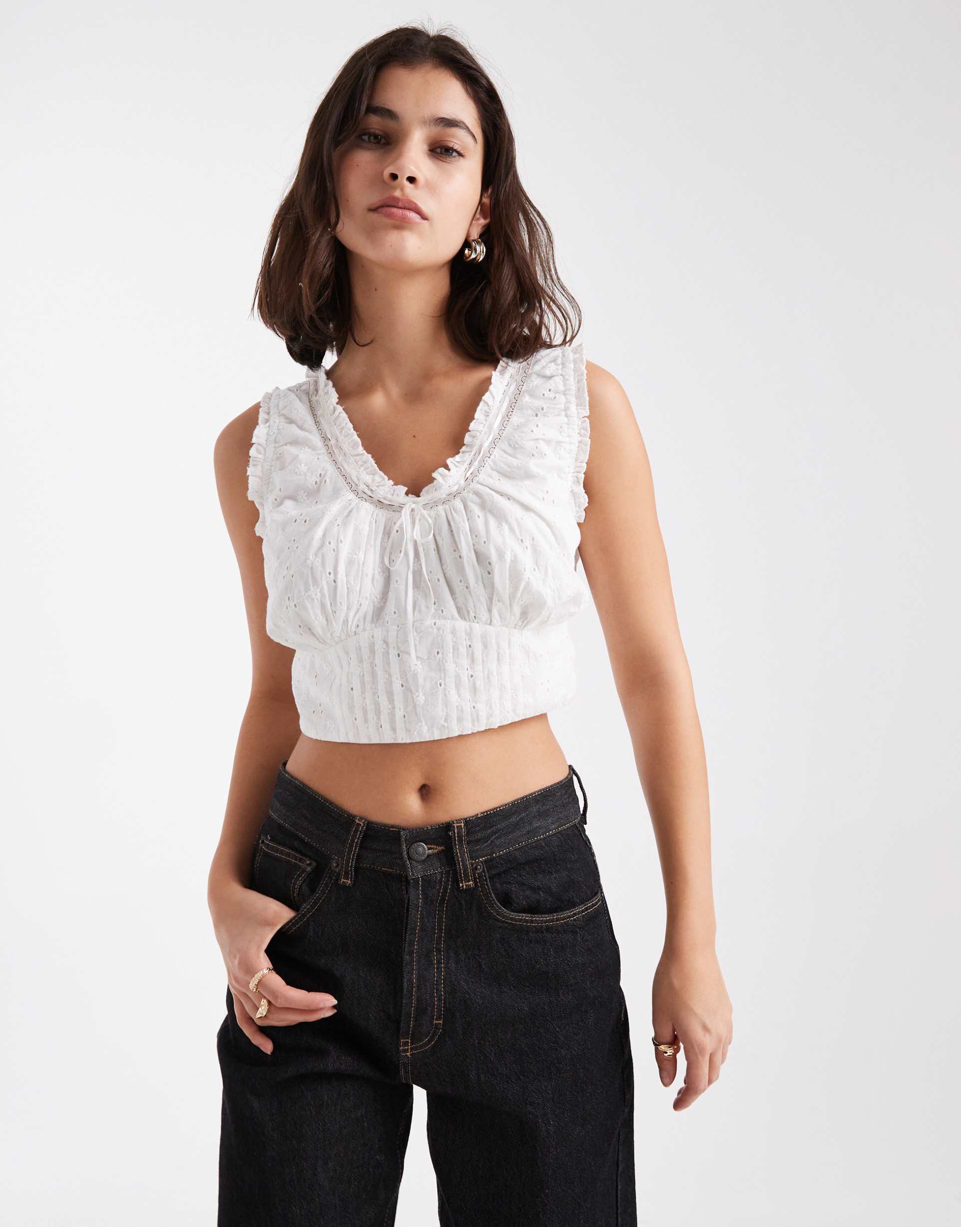 WEDNESDAY'S GIRL TIE FRONT CROPPED CAMI IN WHITE