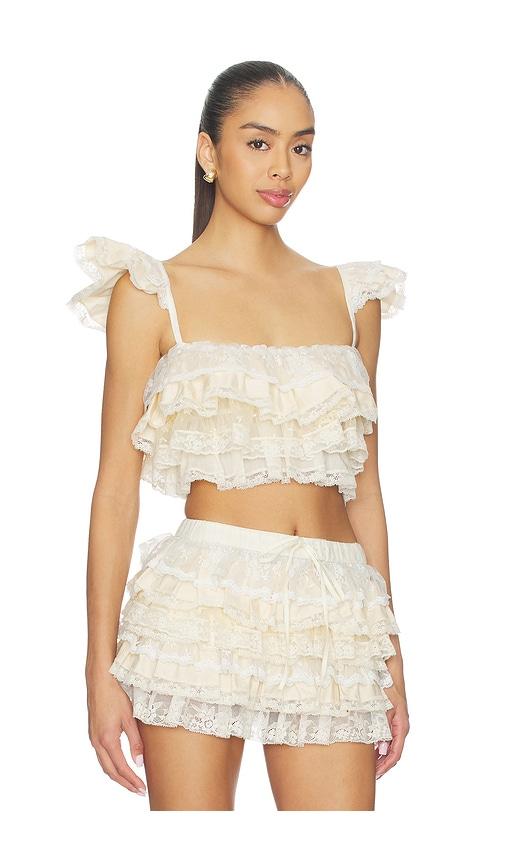 YUHAN WANG RUFFLE LACE TIER CAMI TOP IN CREAM.