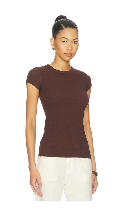 ENZA COSTA TEXTURED RIB CAP SLEEVE CREW IN CHOCOLATE.