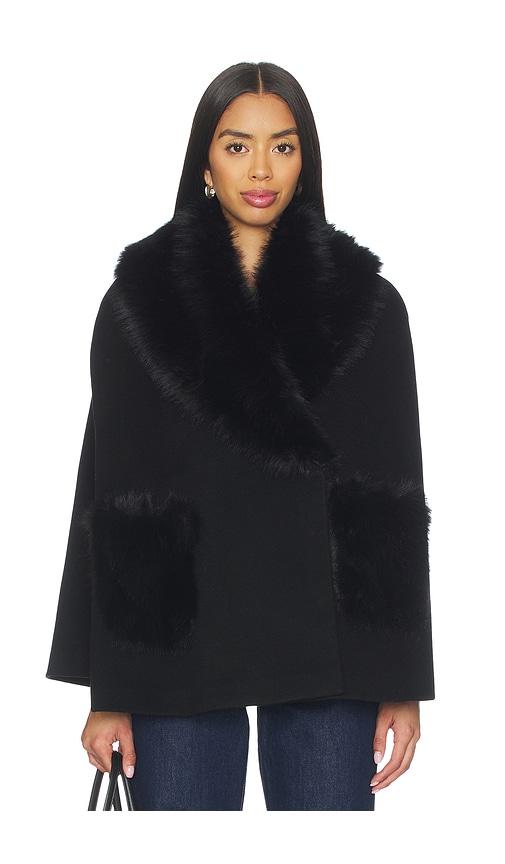 L'AGENCE CHANA FAUX FUR CAPE IN BLACK.