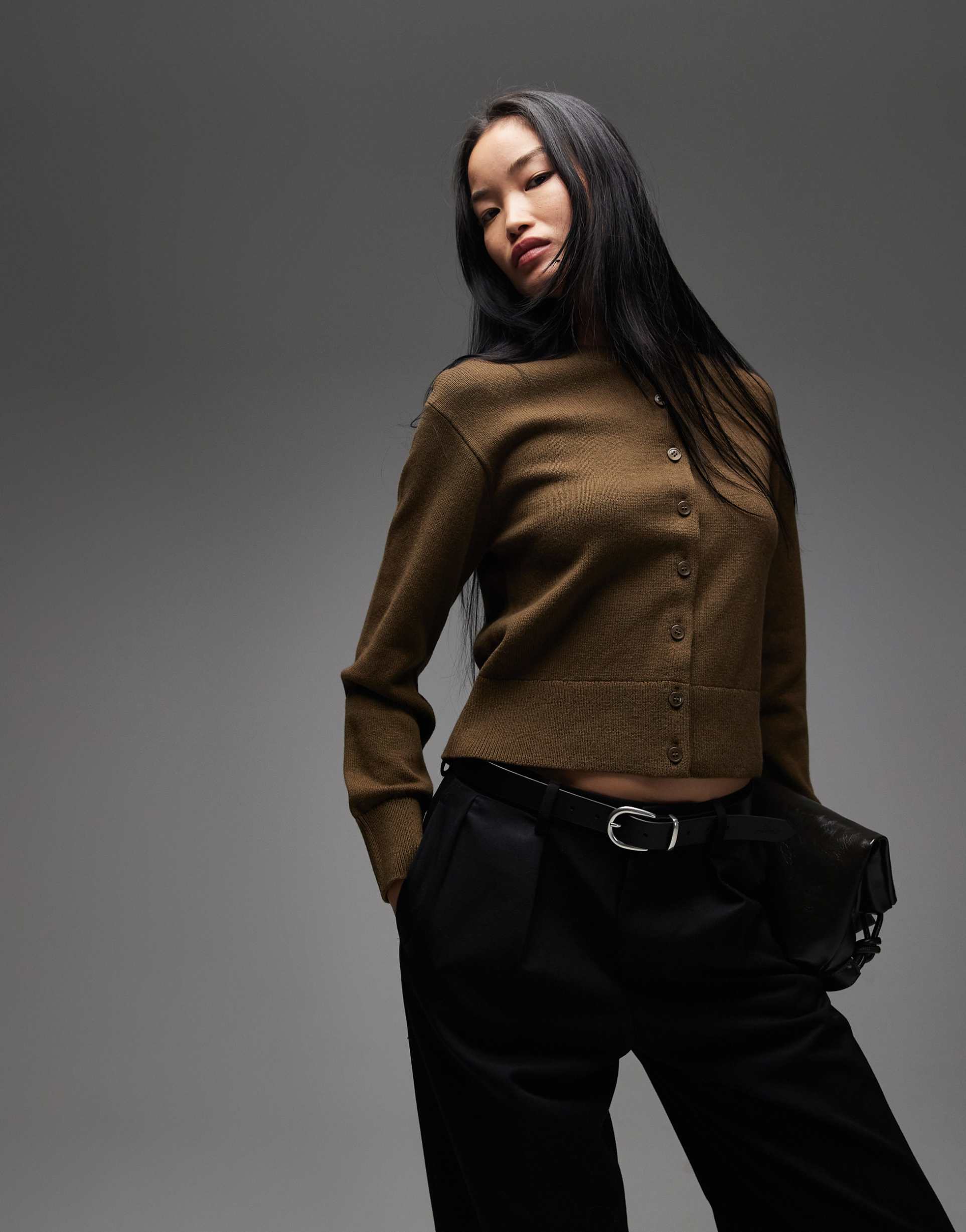 & OTHER STORIES WOOL CARDIGAN WITH BUTTON FRONT IN DARK BROWN