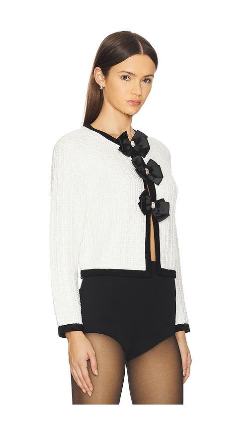 ALICE + OLIVIA ALIRA BOW CARDIGAN IN WHITE.
