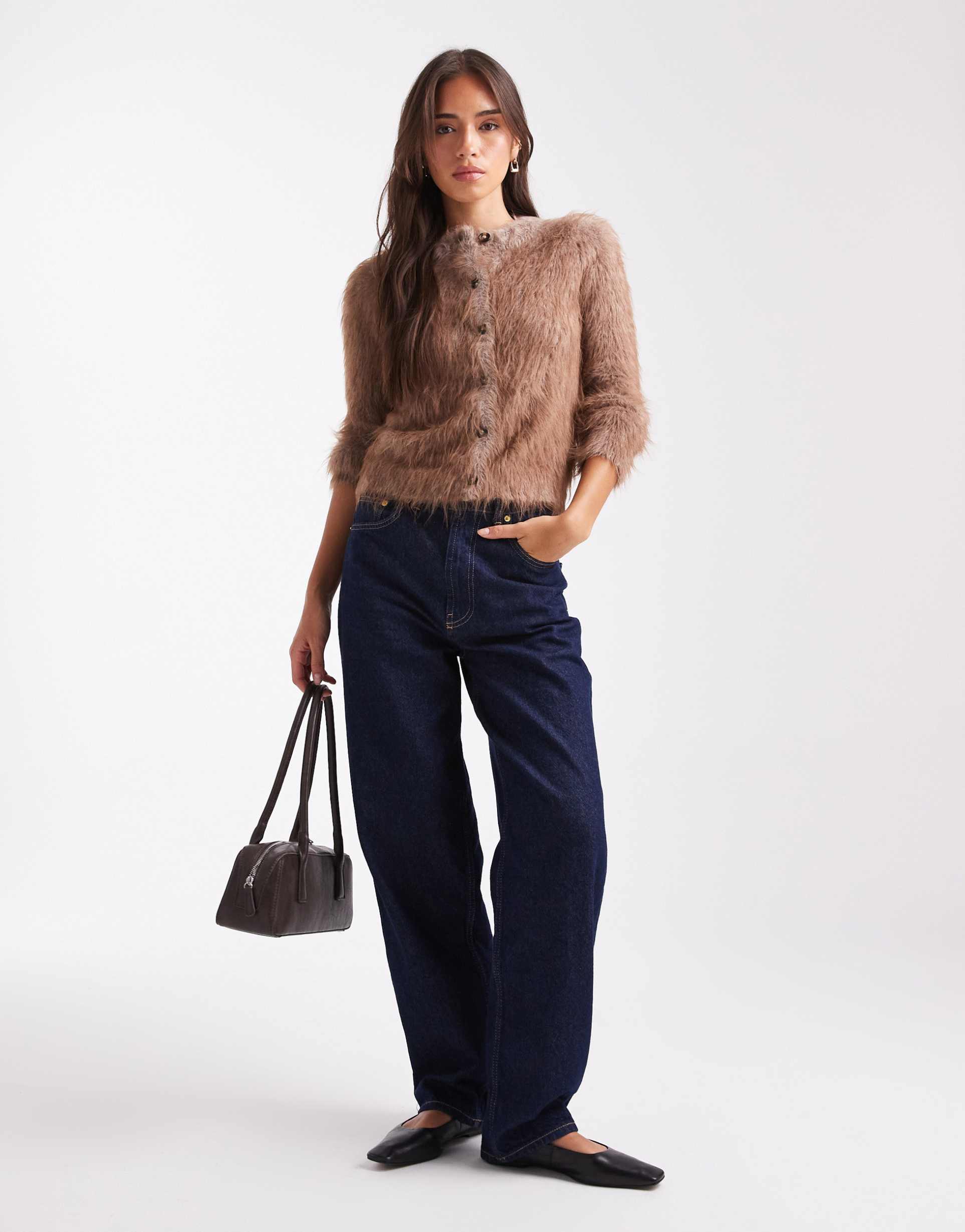 ASOS DESIGN EXTREME EYELASH KNIT NEAT FIT CARDIGAN IN MOCHA