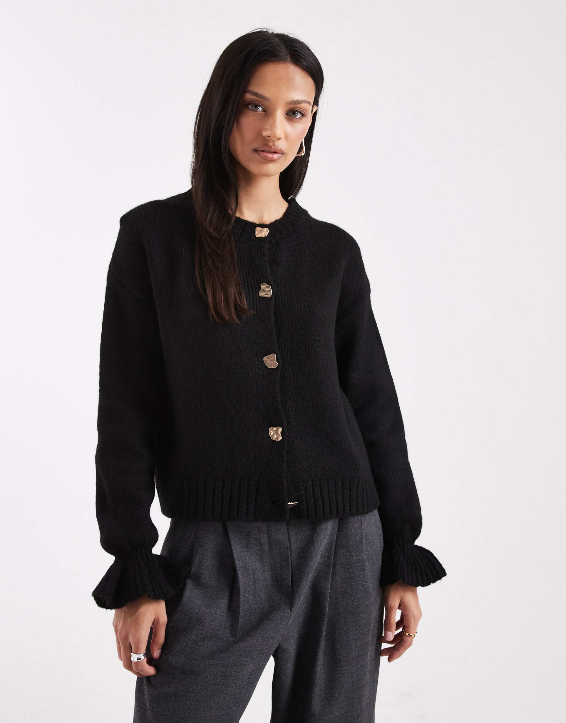 ASOS DESIGN KNIT CARDIGAN WITH GOLD BUTTONS IN BLACK
