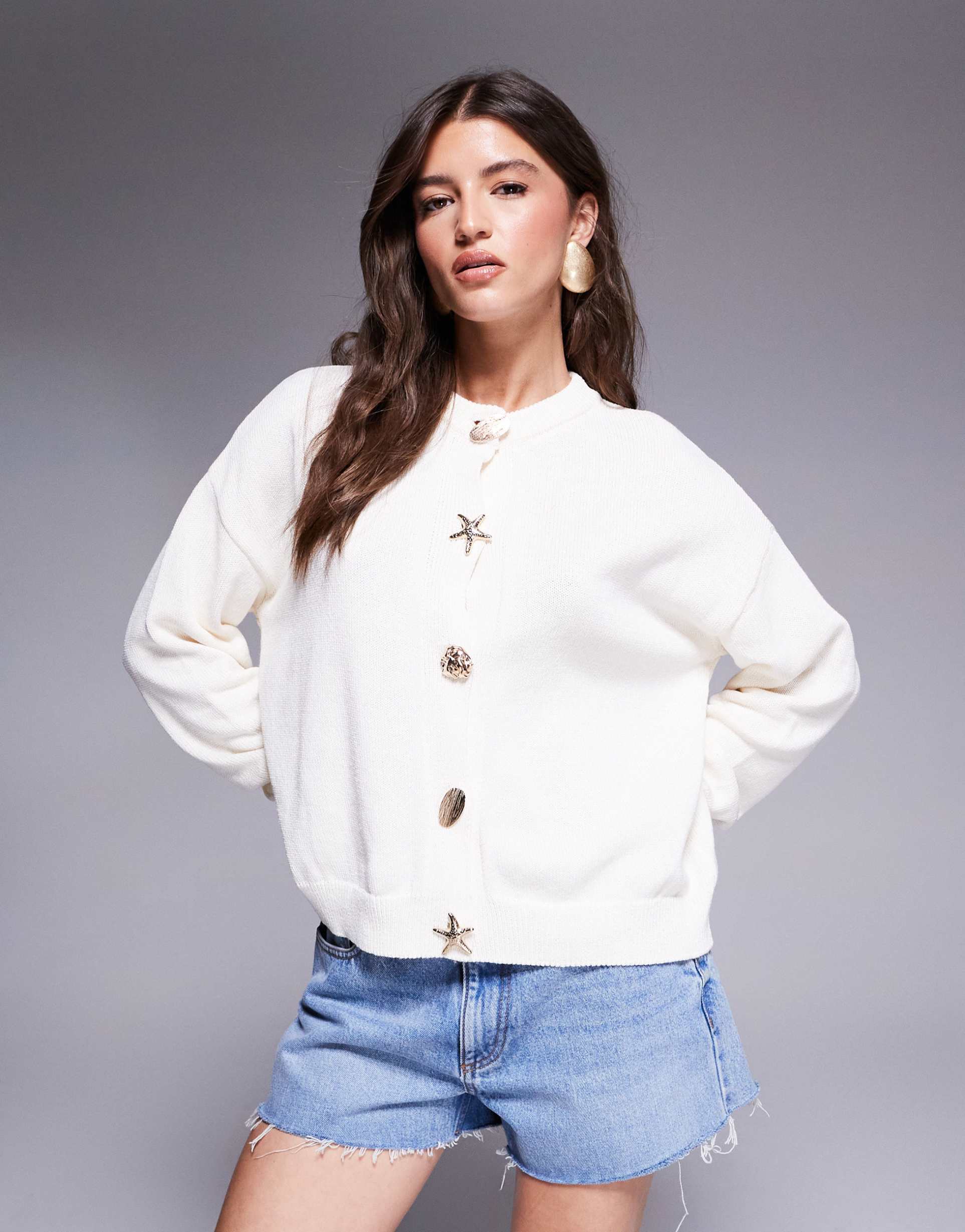 ASOS DESIGN KNIT CARDIGAN WITH GOLD BUTTONS IN ECRU