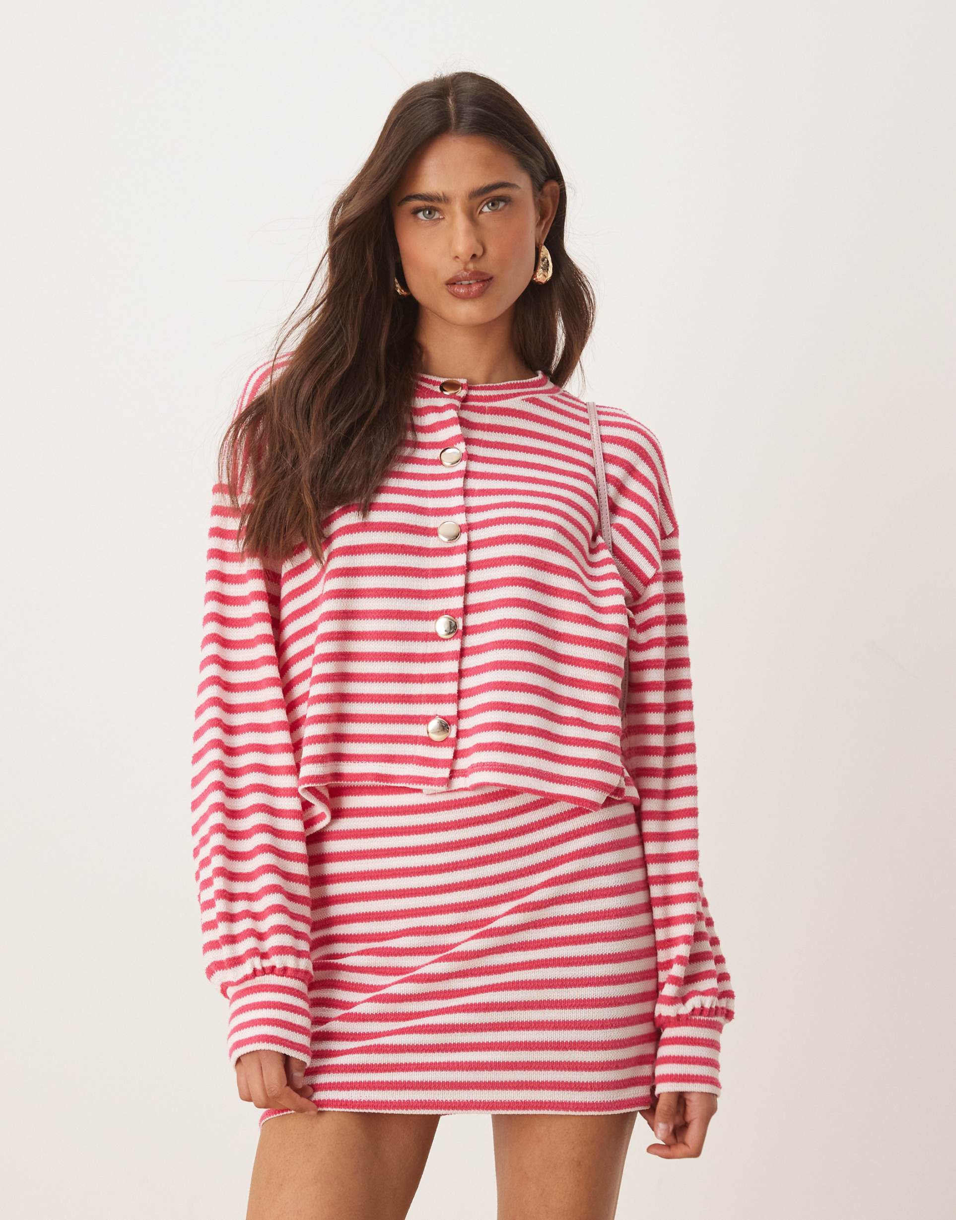 ASOS DESIGN LONG SLEEVE CARDIGAN IN PINK STRIPE - PART OF A SET