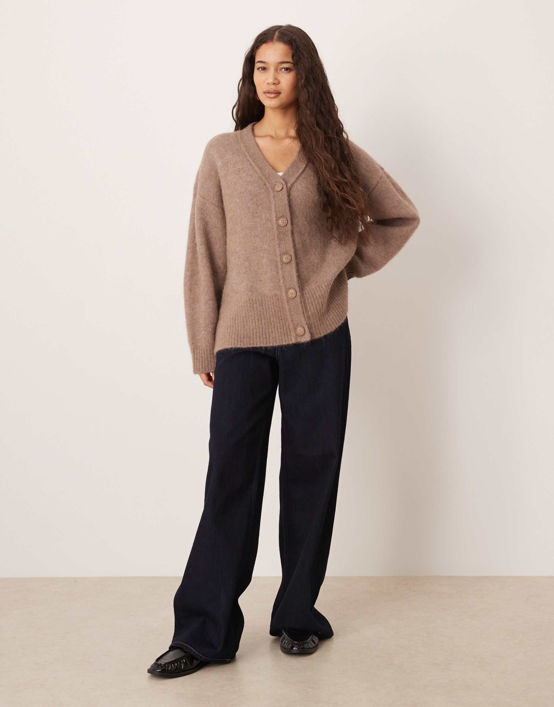 ASOS DESIGN WOOL AND ALPACA BOYFRIEND CARDIGAN IN MUSHROOM