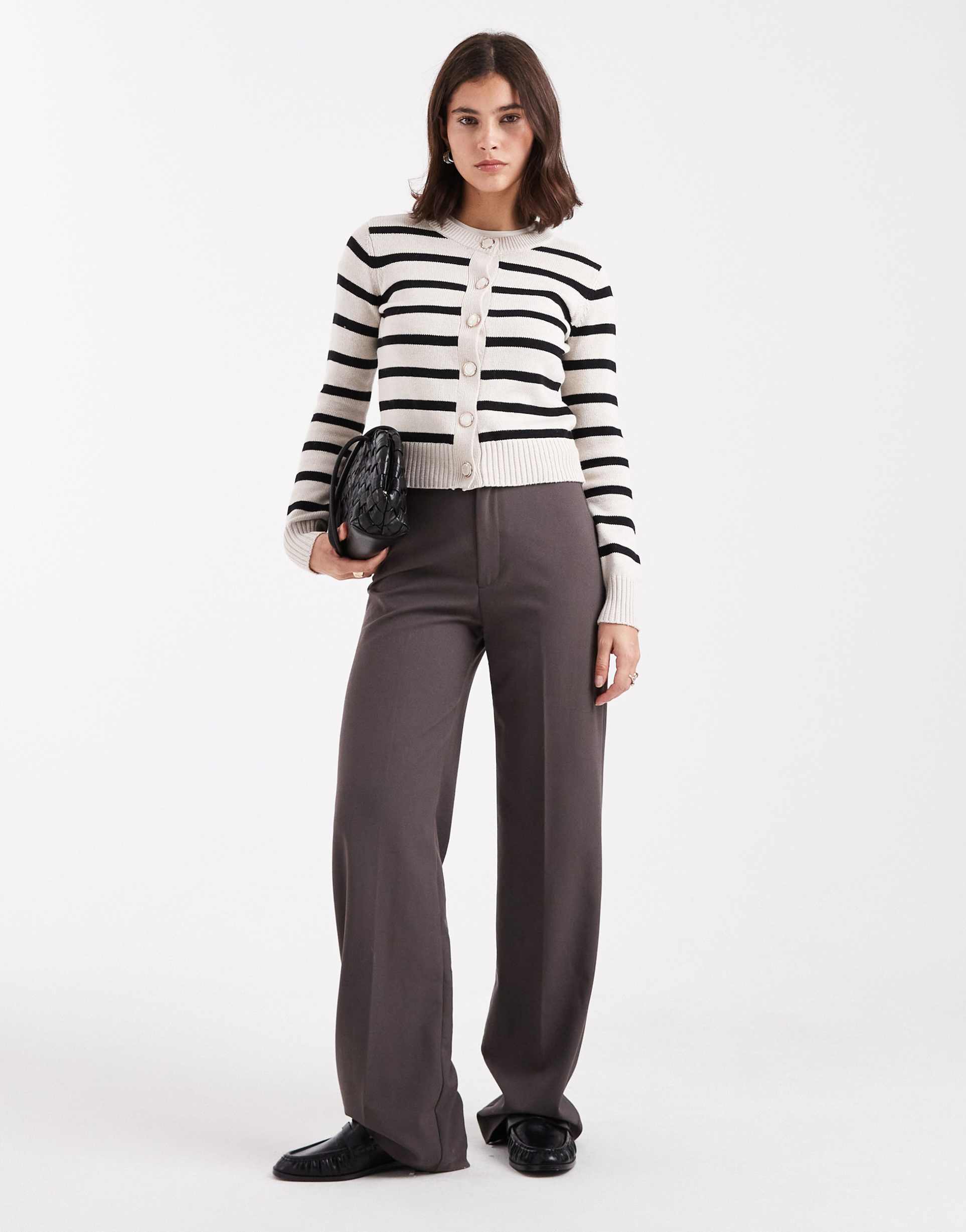 BRAVE SOUL CARDIGAN WITH CONTRAST BUTTONS IN BLACK AND IVORY STRIPES