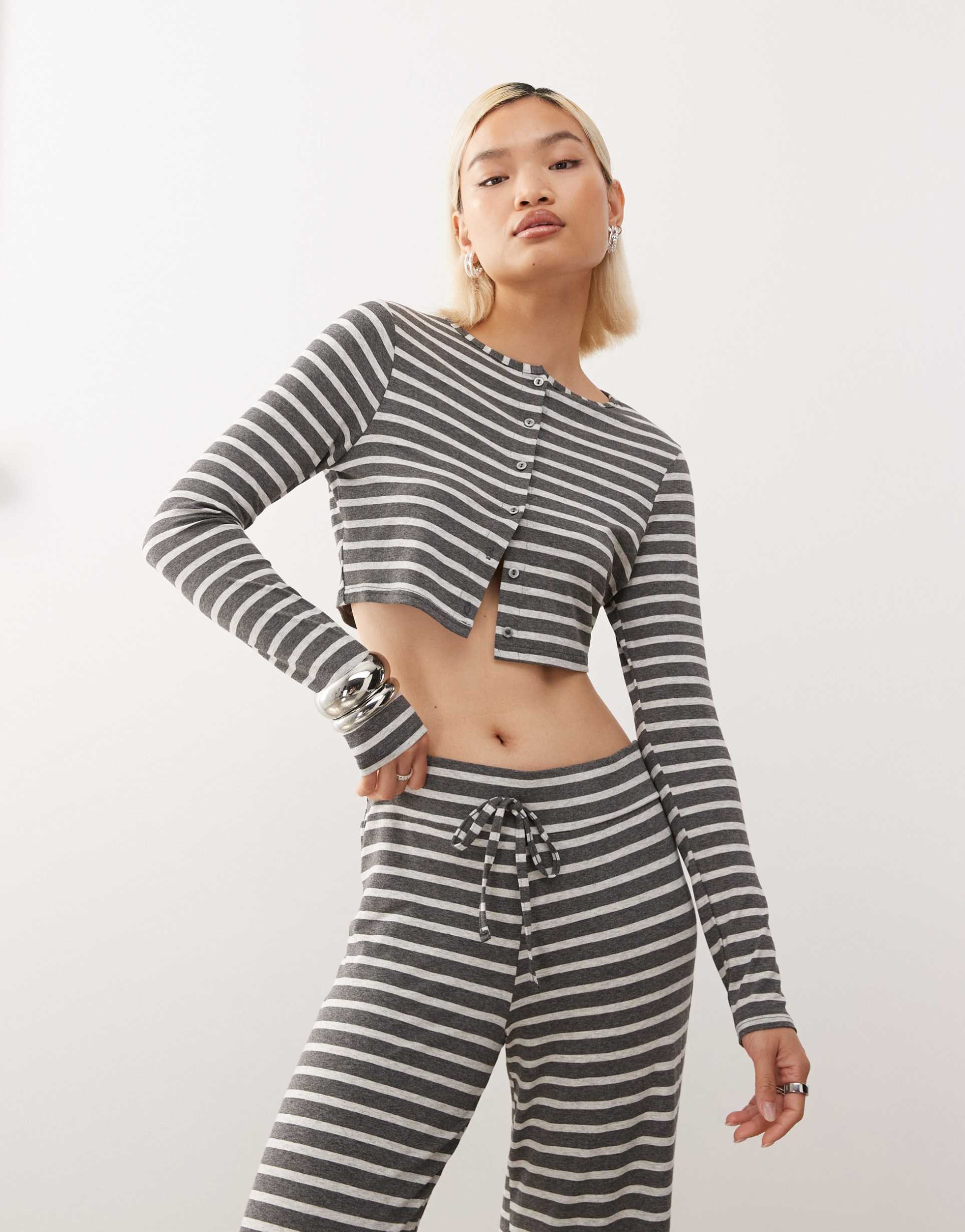 COLLUSION MICRO CROP CARDIGAN IN GRAY STRIPE - PART OF A SET