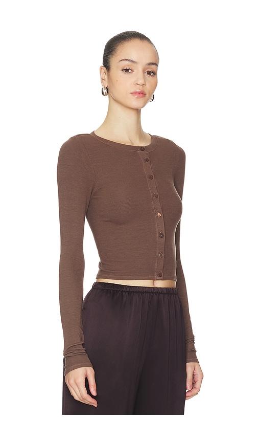 ENZA COSTA SILK RIB ESSENTIAL CARDIGAN IN BROWN.