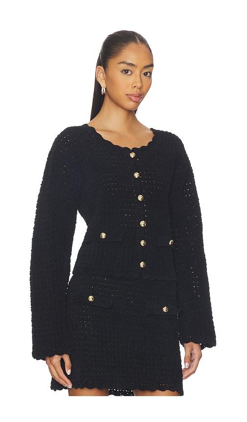 GANNI CHENILLE CROCHET CARDIGAN IN BLACK.