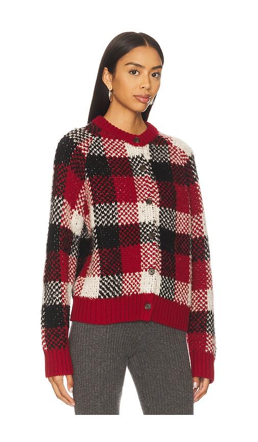 GUEST IN RESIDENCE BUFFALO PLAID CARDIGAN IN RED.