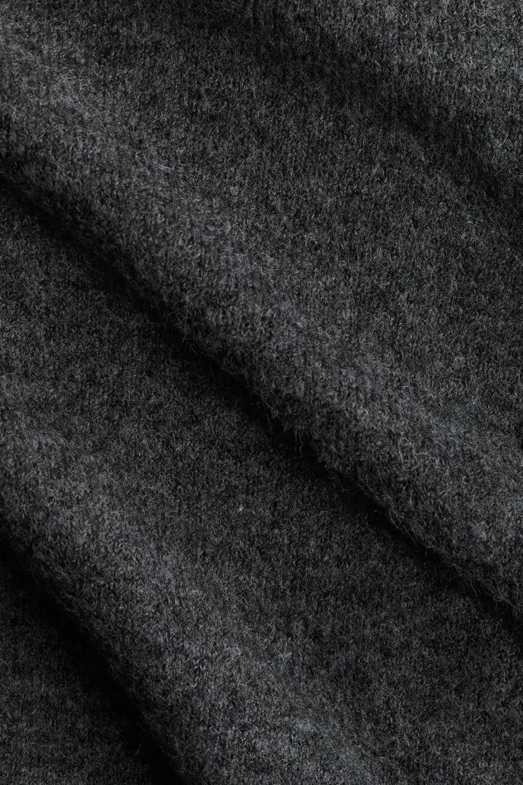 This loose-fit cardigan features a soft wool fabric with a textured matte dark gray finish, offering cozy warmth for autumn through spring. Designed with a relaxed silhouette and long regular sleeves, it has an open front closure for easy layering. Ideal for casual wear, loungewear, or light workwear, this versatile piece combines comfort and effortless style for everyday use.