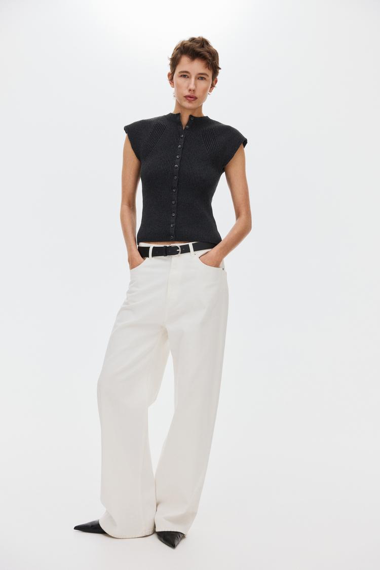 SHORT-SLEEVED RIB-KNIT CARDIGAN