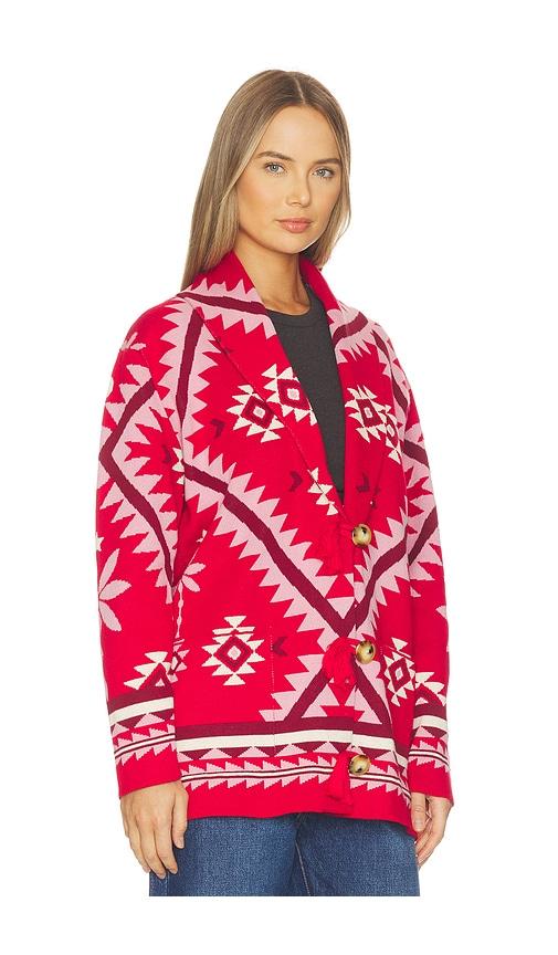 HAYLEY MENZIES SUNDANCE CARDIGAN IN RED.