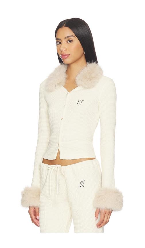 JULIET JOHNSTONE WAFFLE KNIT CARDIGAN IN CREAM.