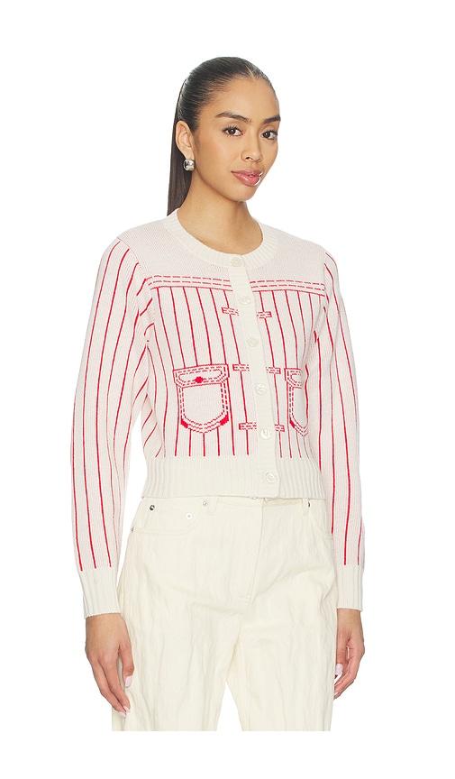 KENZO TROMPE L'OEIL CARDIGAN IN IVORY,RED.