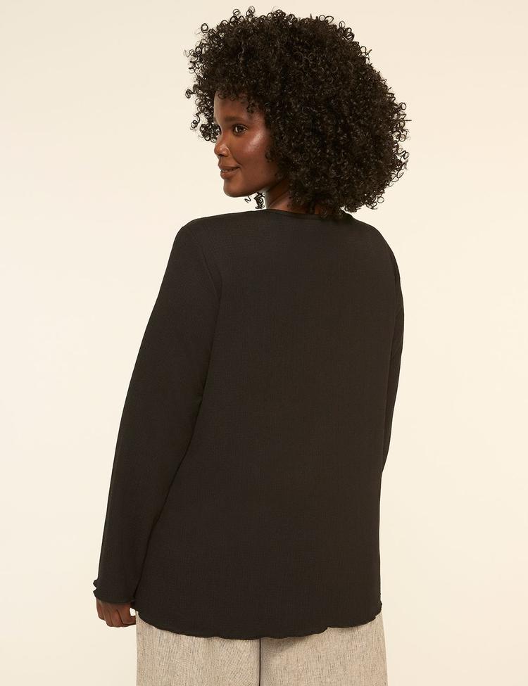 CRINKLE CREW-NECK BUTTON-FRONT CARDIGAN