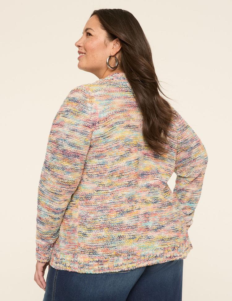 This plus size open-front cardigan features a colorful multi dusty pastel space-dye knit crafted from soft cotton for cozy comfort. Designed with a classic regular fit, it offers long sleeves and ribbed trim detailing along the border, cuffs, and hem. The hip-length silhouette makes it perfect for layering over casual or workwear outfits during spring and autumn. Its textured knit pattern adds visual interest, while the open front neckline enhances its relaxed vibe. Ideal for casual, loungewear, and workwear occasions, this cardigan blends comfort with effortless style.