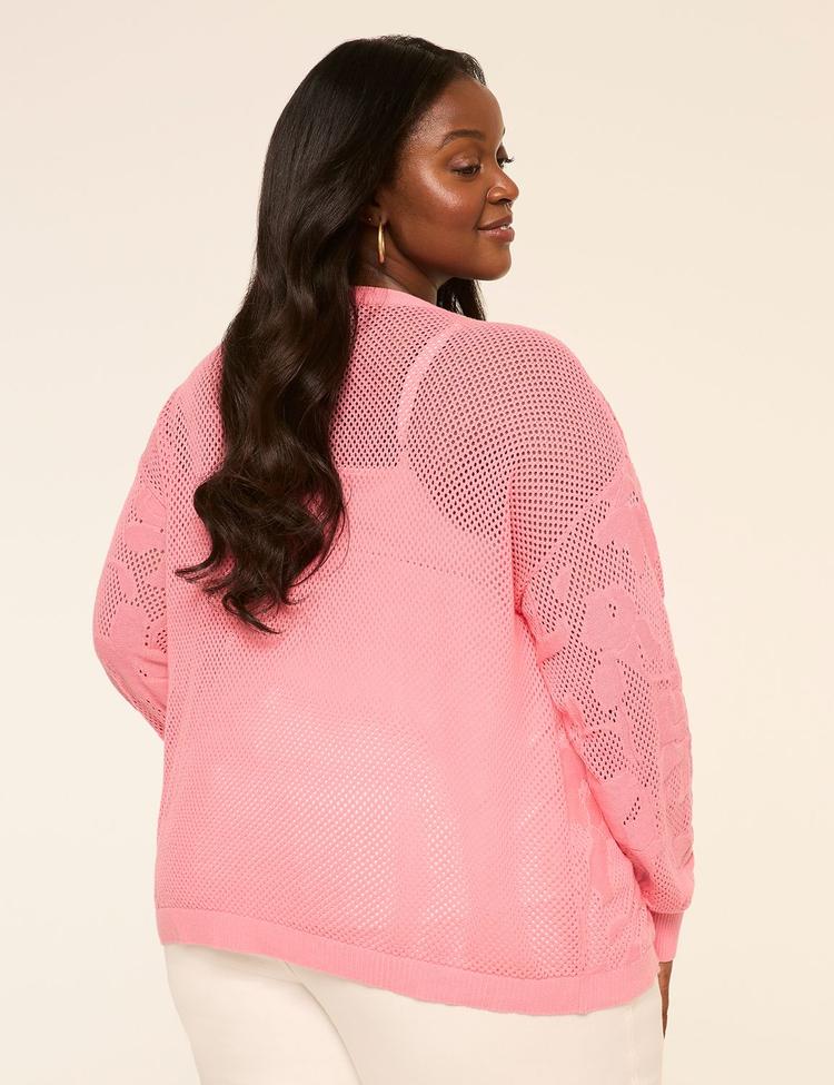 OPEN-FRONT FLORAL MESH-STITCH CARDIGAN