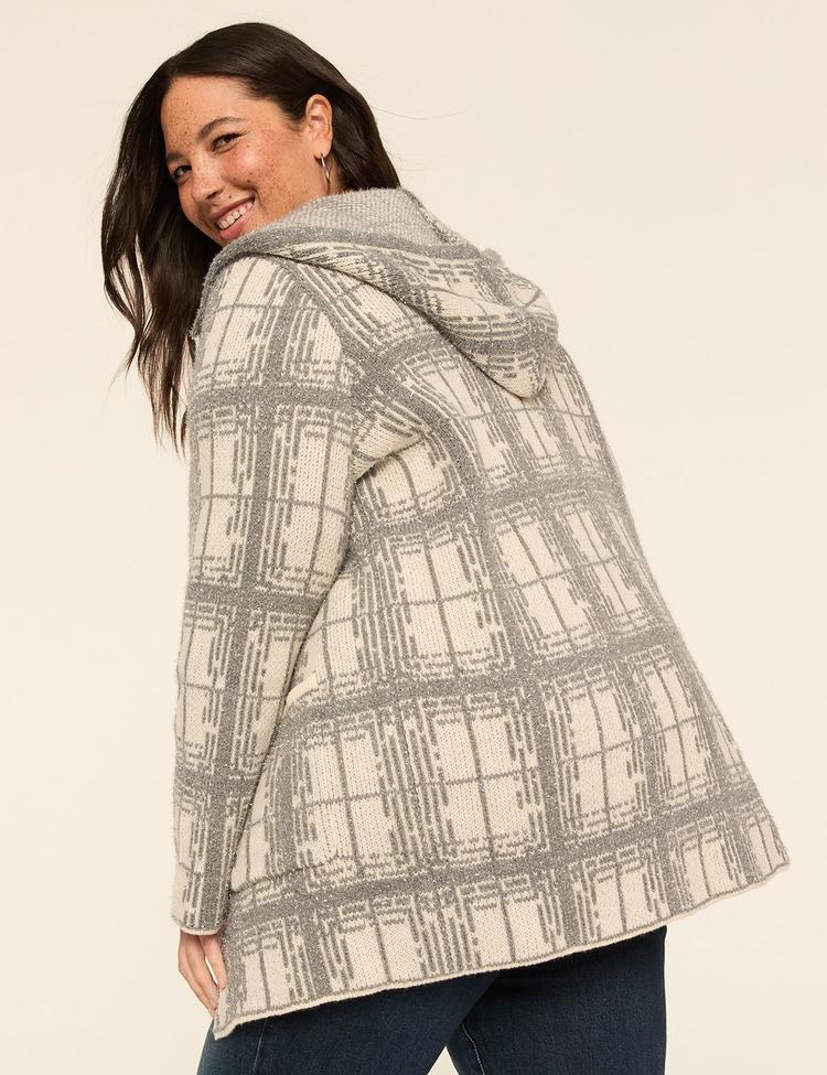 hooded plaid sweater knit