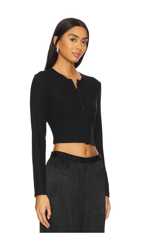 LESET LAUREN CROP CARDIGAN IN BLACK.