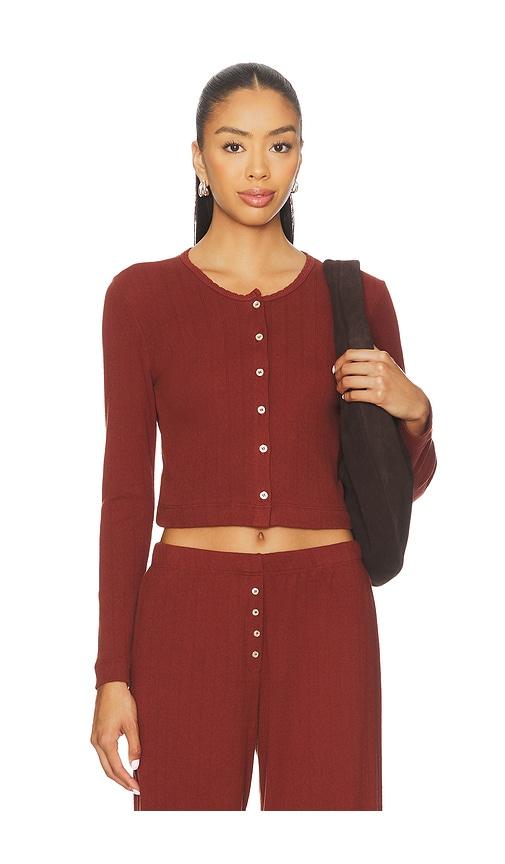 LESET POINTELLE CROP CARDIGAN IN BRICK.