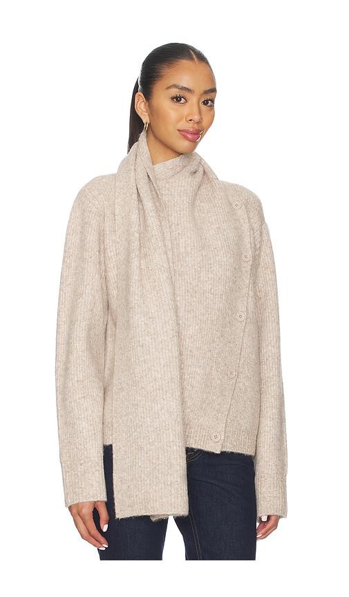 LOVERS AND FRIENDS OREN SCARF NECK CARDIGAN IN BEIGE.