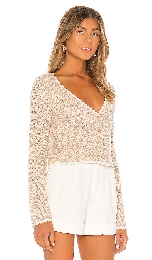 MAJORELLE DEVANI CROCHET CARDIGAN IN BEIGE.