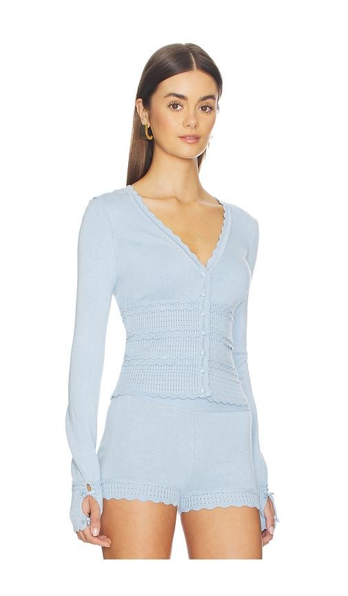 MAJORELLE KIRIA POINTELLE CARDIGAN IN BLUE.