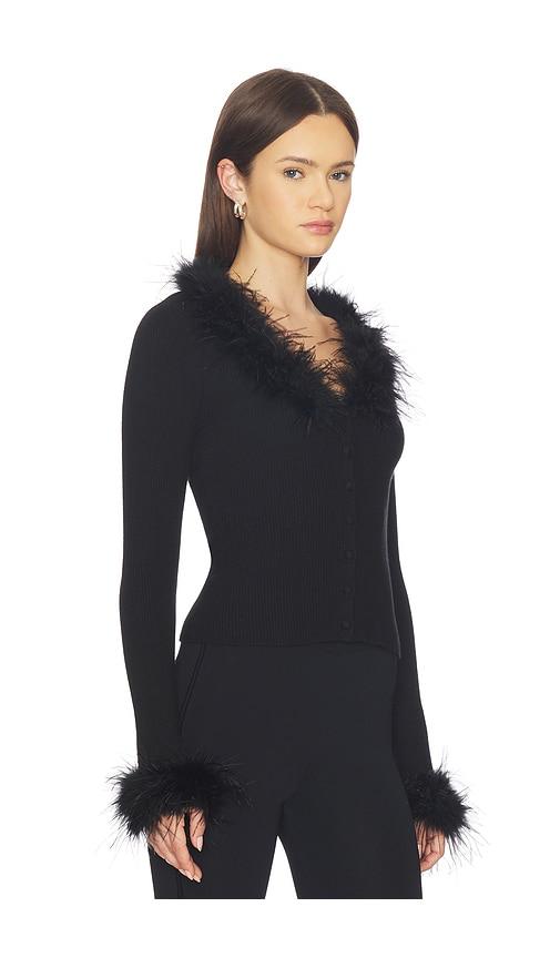 MAJORELLE LELA FEATHER CARDIGAN IN BLACK.