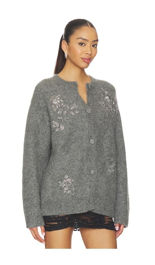 MARKGONG BEADED MOHAIR KNIT CARDIGAN IN GREY.