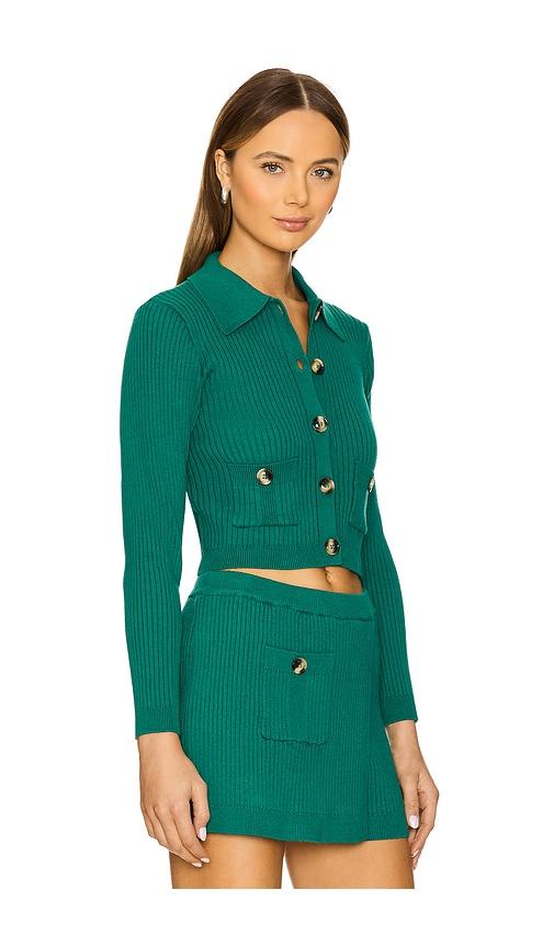 MATTHEW BRUCH KNIT LONG SLEEVE COLLARED CARDIGAN IN TEAL.