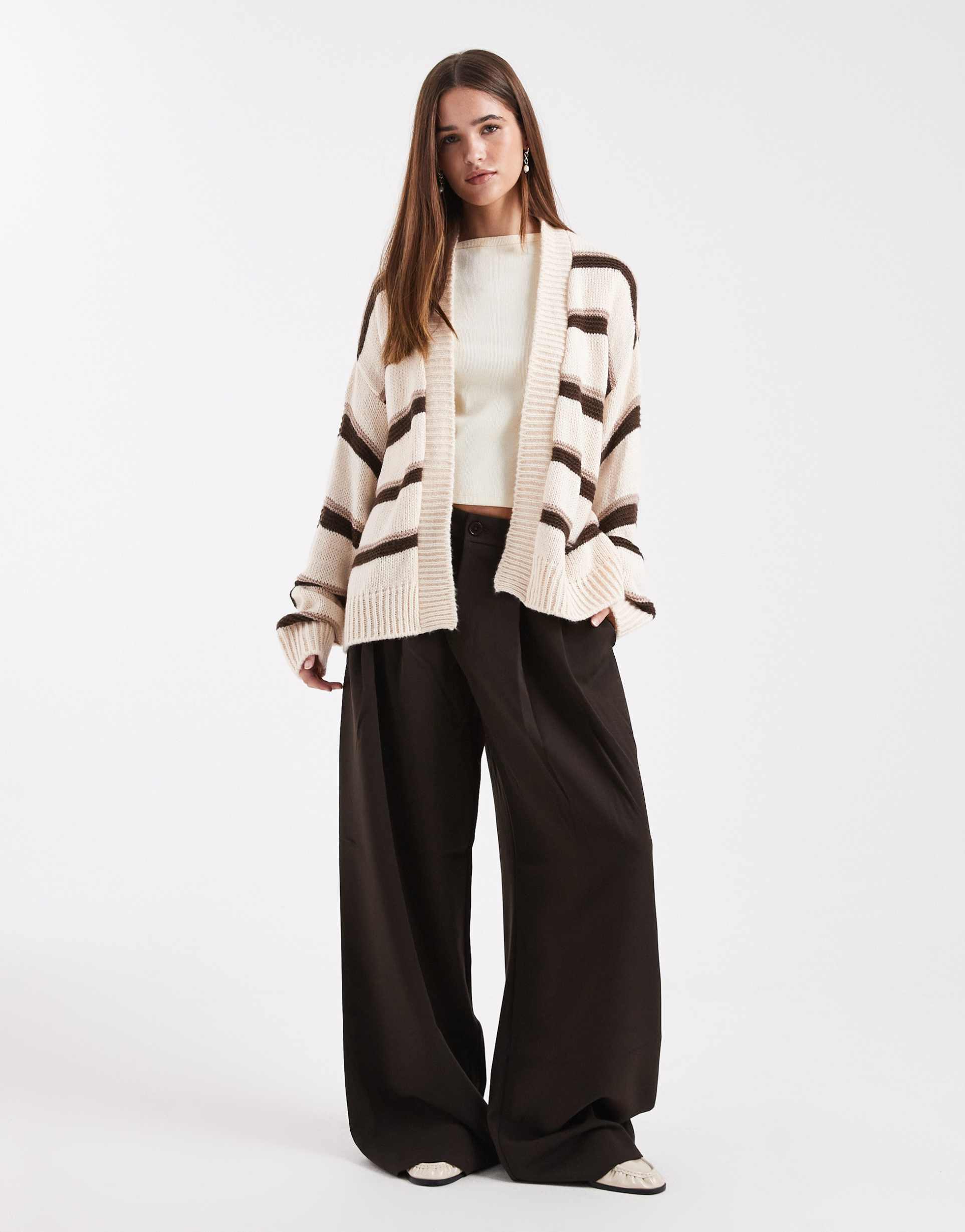 MISS SELFRIDGE EDGE TO EDGE CARDIGAN IN BROWN STRIPE