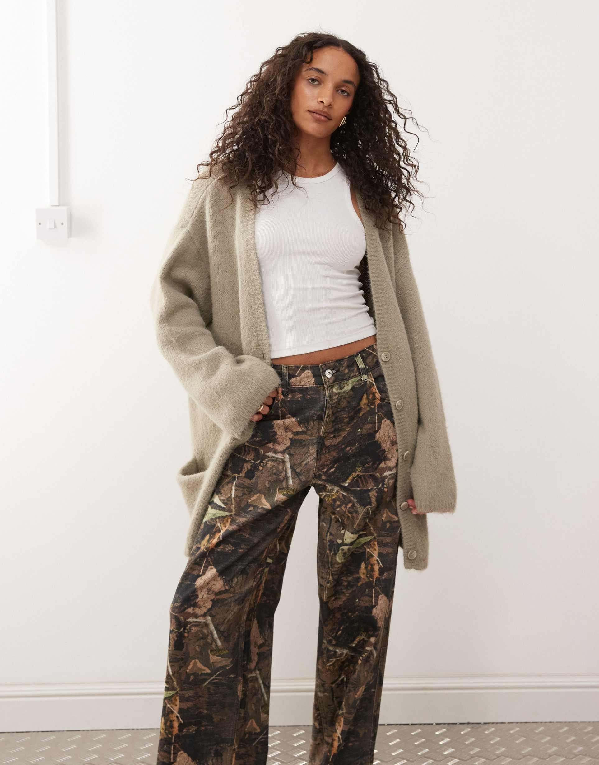 MONKI OVERSIZED FLUFFY KNIT CARDIGAN IN BEIGE