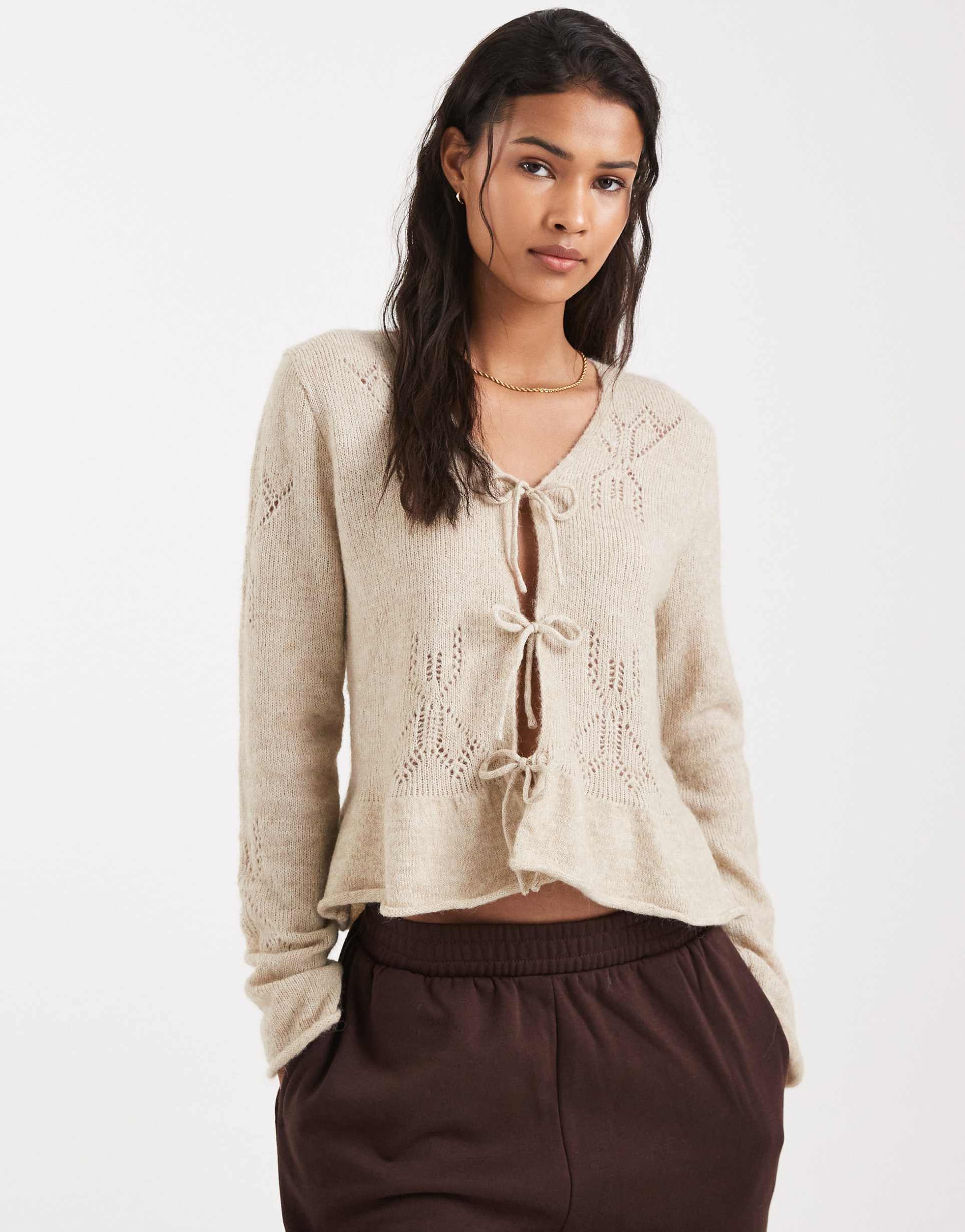 ONLY TIE FRONT CARDIGAN WITH WOOL IN CREAM