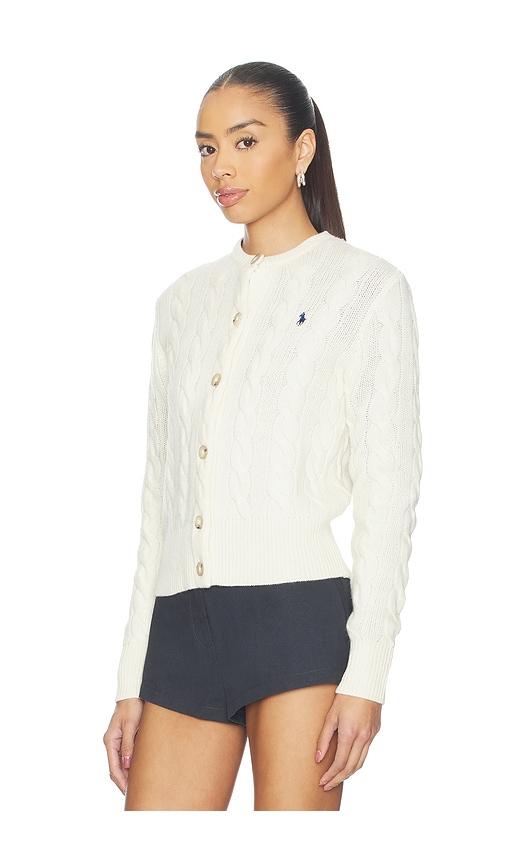 POLO RALPH LAUREN CABLE KNIT WOOL CASHMERE CARDIGAN IN CREAM.