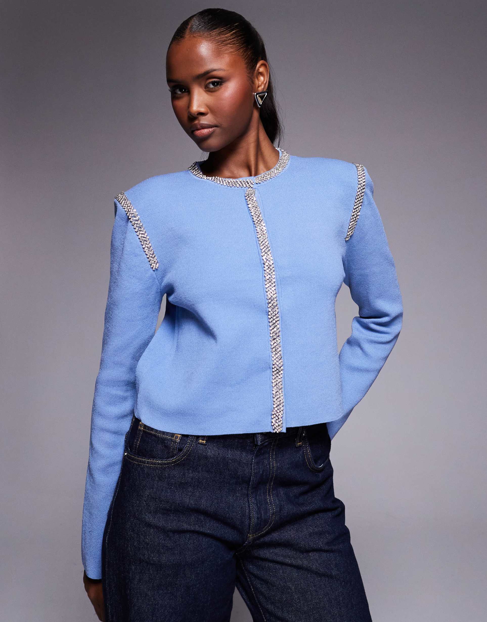 RIVER ISLAND SHOULDER PAD DETAILING KNIT CARDIGAN IN LIGHT BLUE